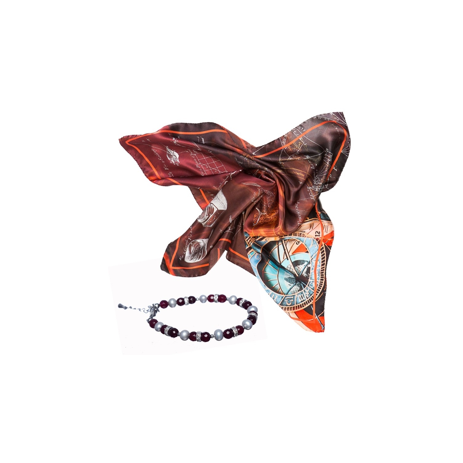 A sweet gift your friend Peter who love chocolate. Office wants to accessorize the outfit, and we recommend you print scarf she wears to think of the country famous for chocolate. He can blend silk scarf designer agate bracelet with lovely garnet and pearls, created by Tie-Me-Up with a special design.