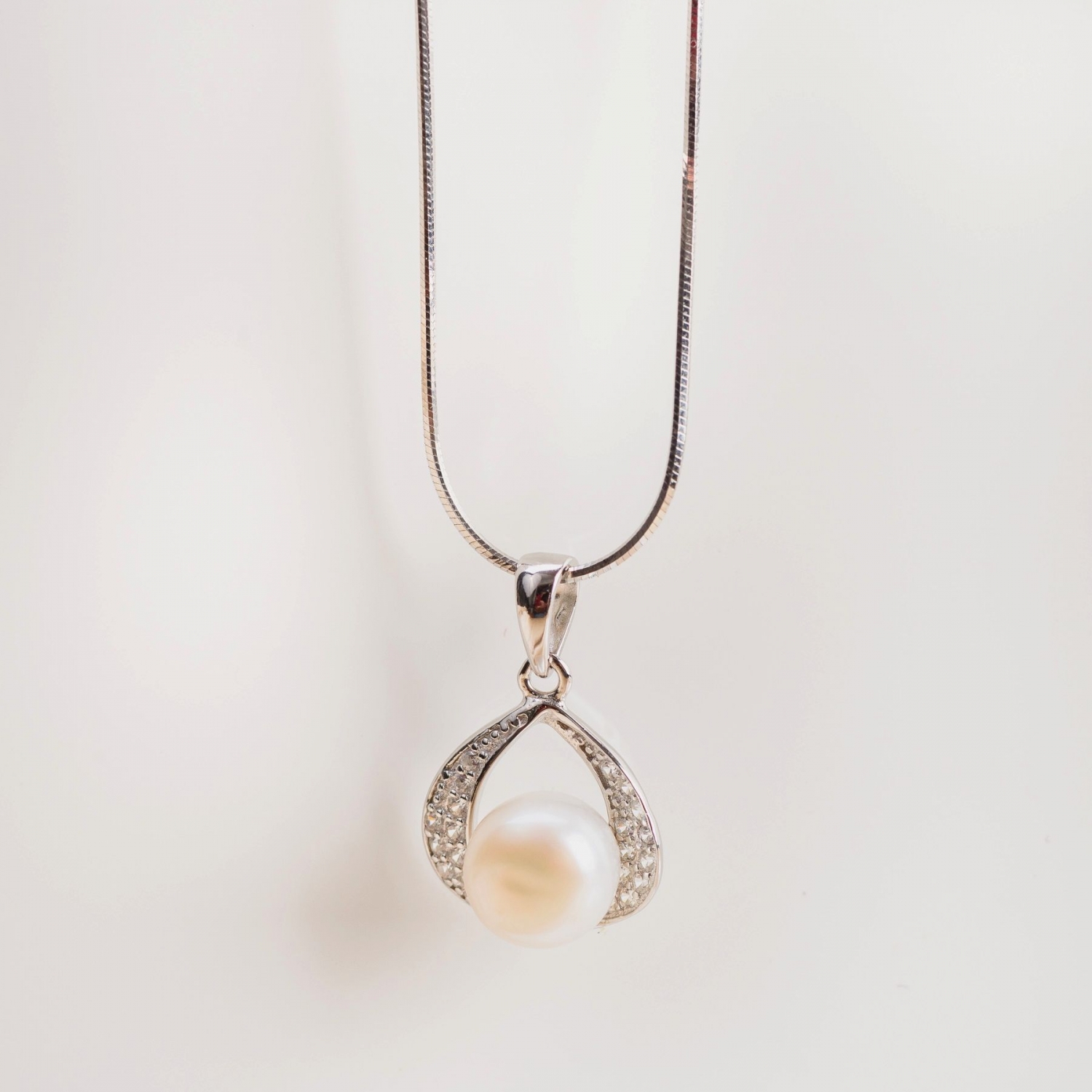 Sterling Silver Earrings, Necklace and Pandant set Pearls Drops