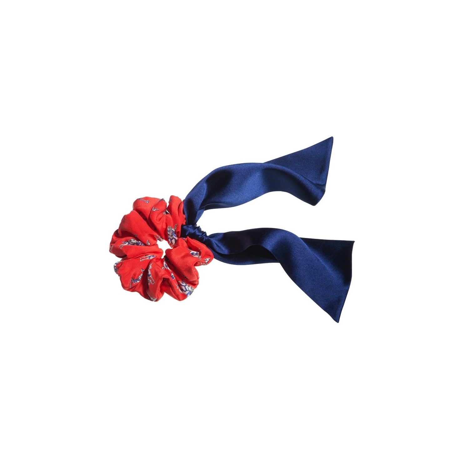 The Hot Red Jeans hair twist is a fashionable accessory for a ponytail or hair bun. This impeccably crafted piece features plush folds of silk with a famous designer print. An accessory for any smart casual outfit, just perfect to match your favourite pair of jeans. Wear it together with a blue navy hair scarf to obtain a fabulous look!