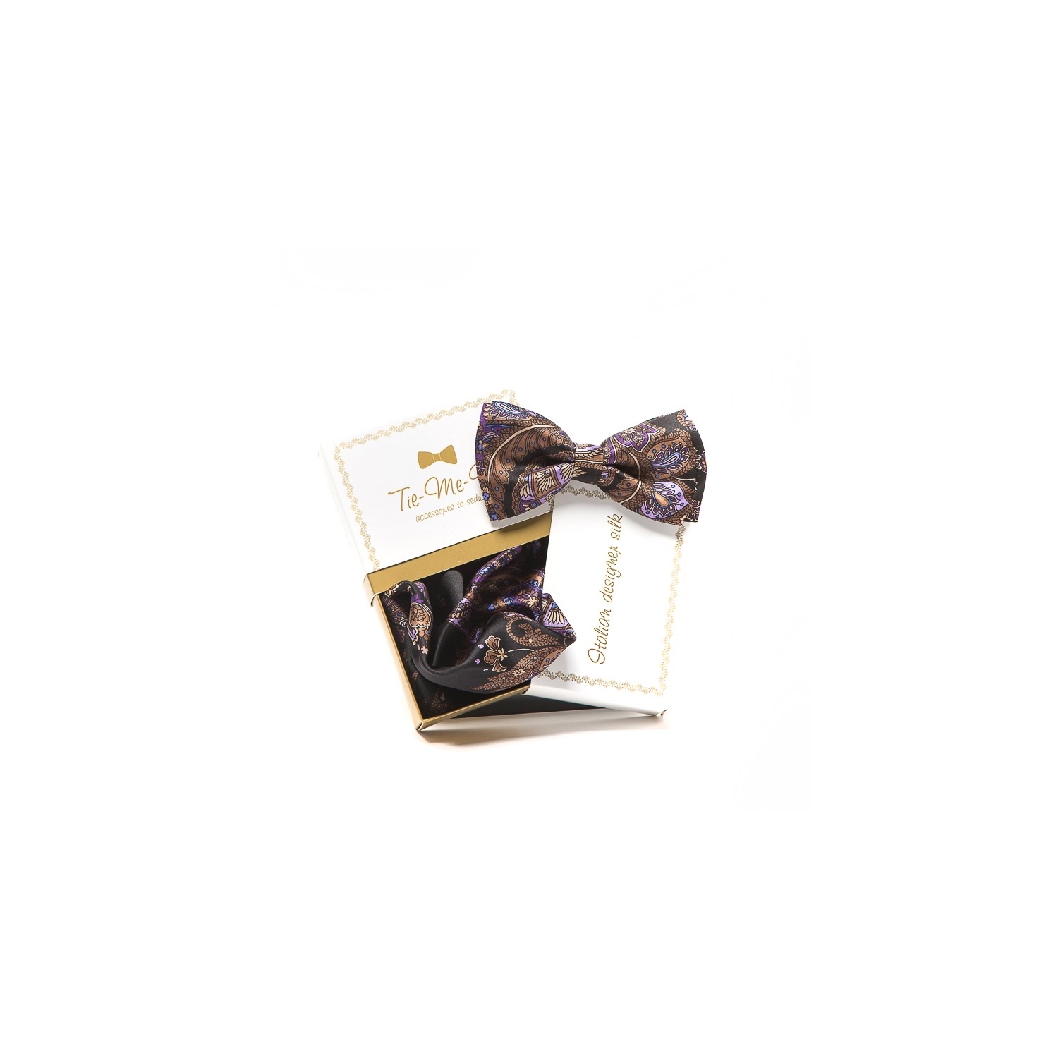 • GIFT : Set handkerchief silk bow tie with black and purple paisley