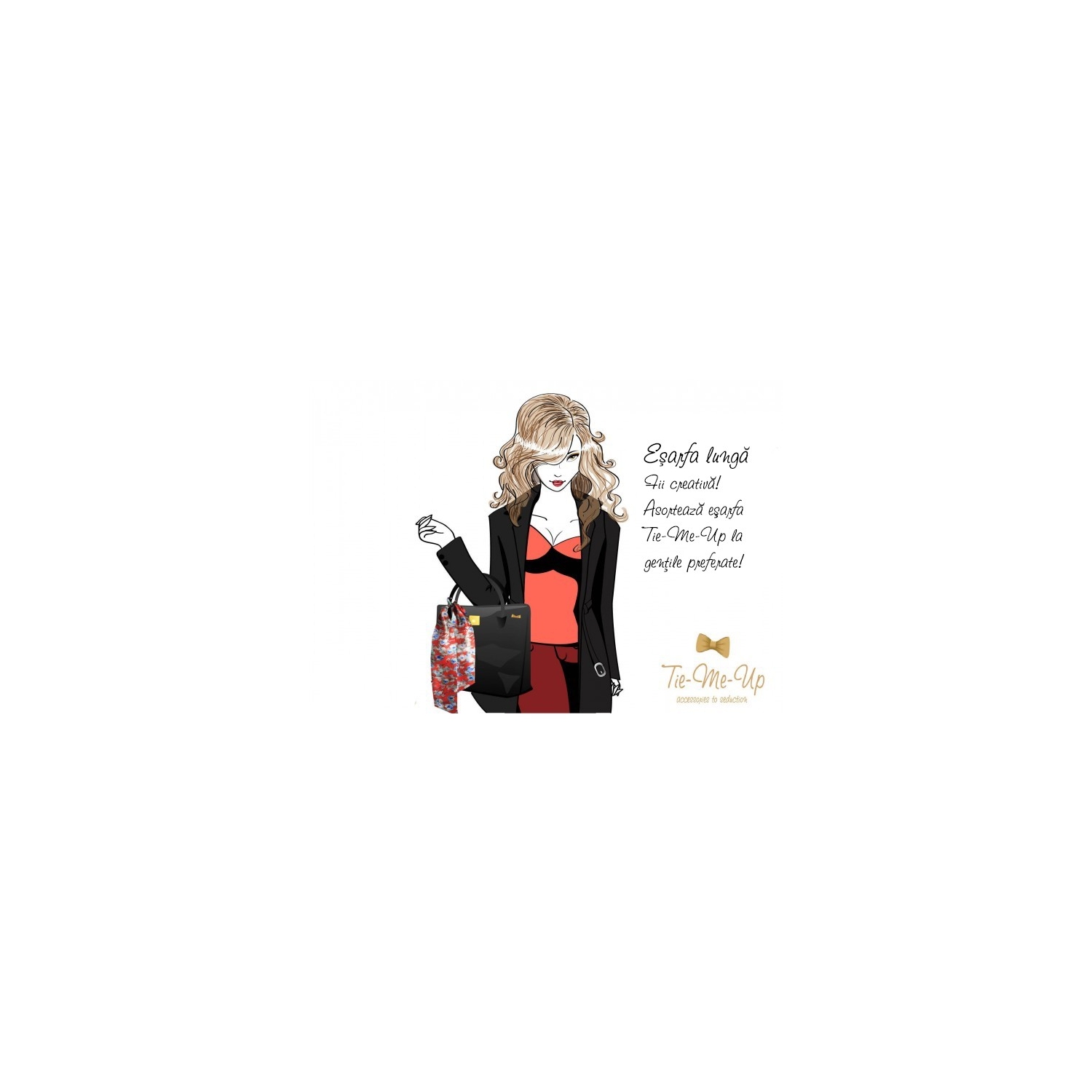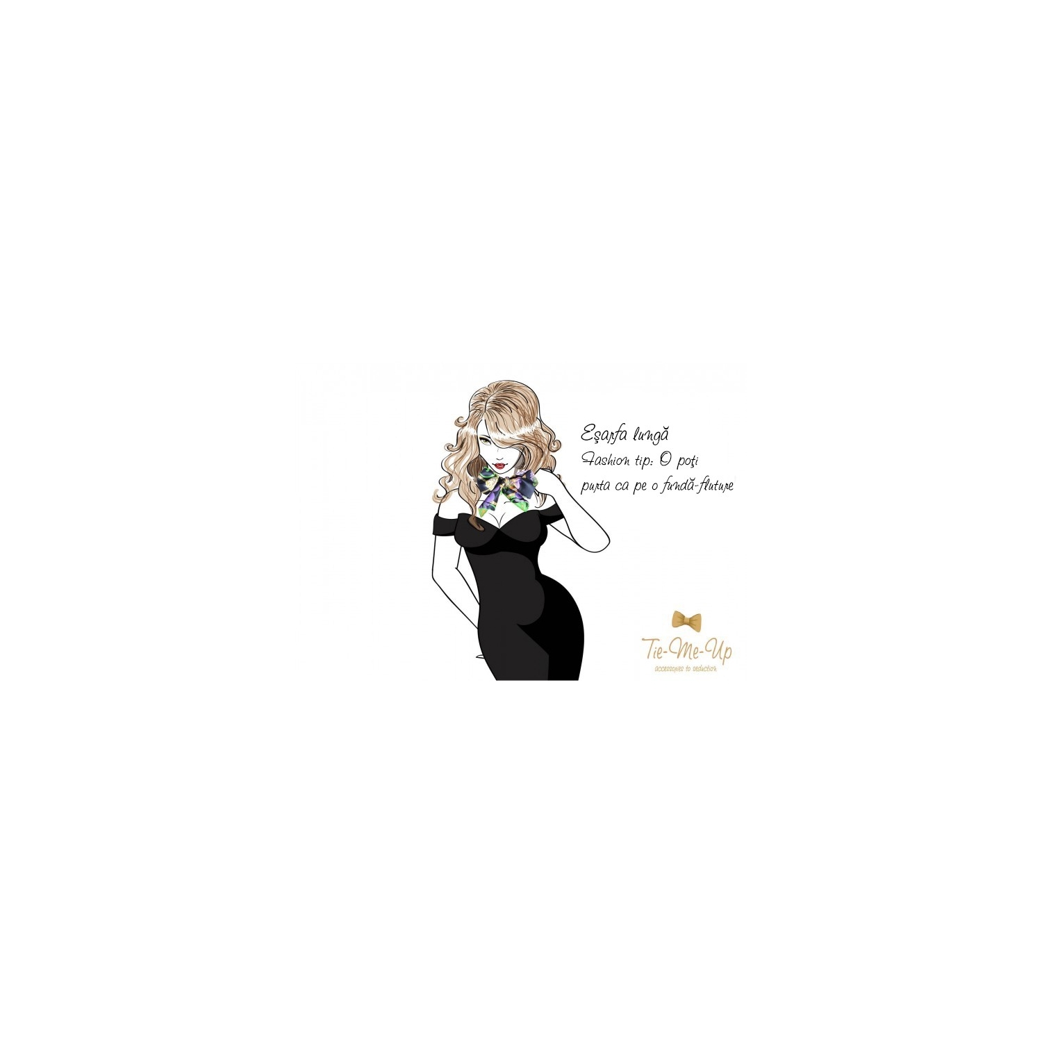 A stylish accessory: a long scarf made from designed natural silk, imported from Italy, with premium quality and texture. Due to its special shape, this double-lined scarf can be worn in your hair, knotted into a bow around your neck or simply fastened: as a necktie or belt around your waist. To view more ways of wearing this particular item, please visit the Style Guide section: http://tiemeup.ro/index.php?route=information/style-guide.