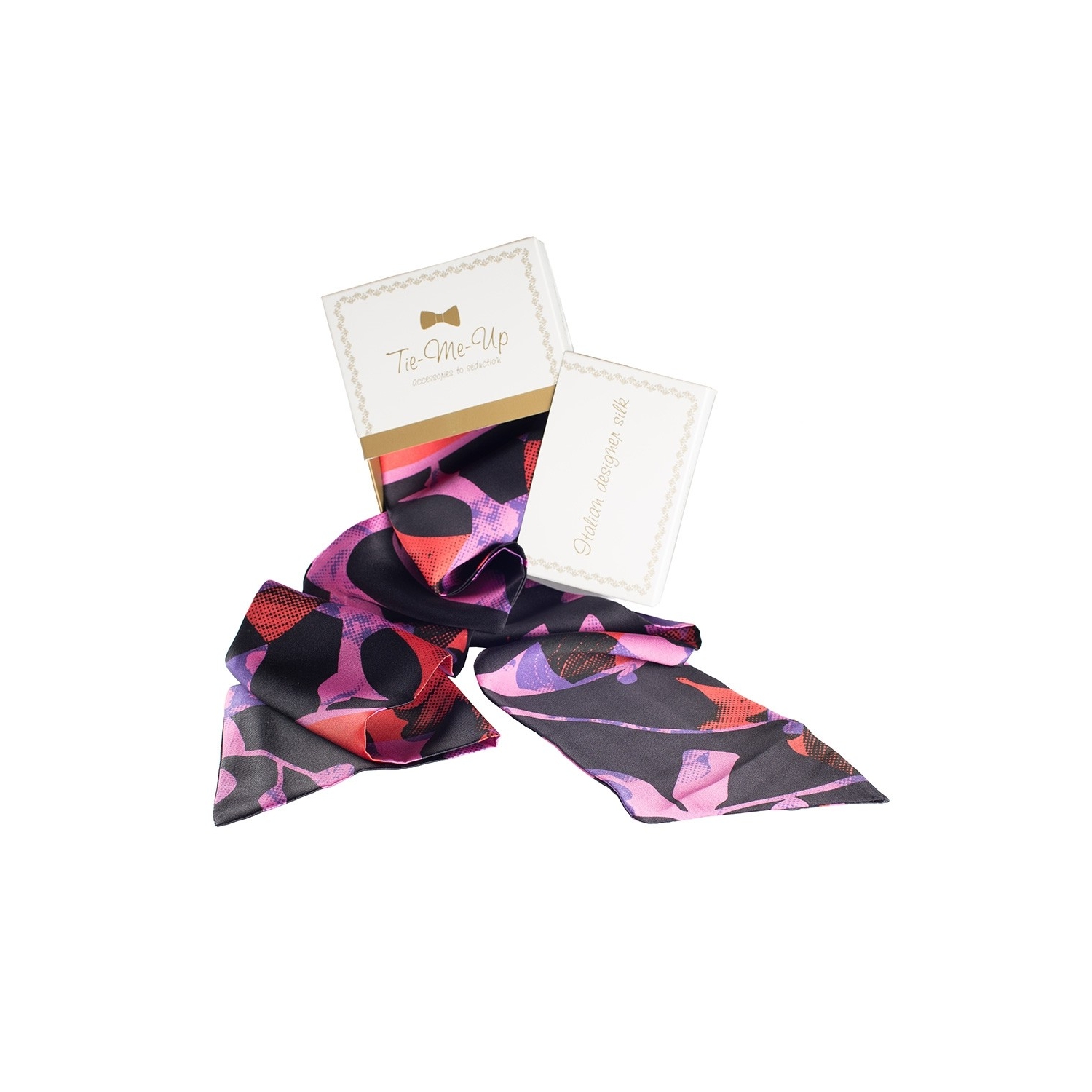 The scarf is delivered in an elegant white envelope and white gift bag with the Tie-Me-Up logo.