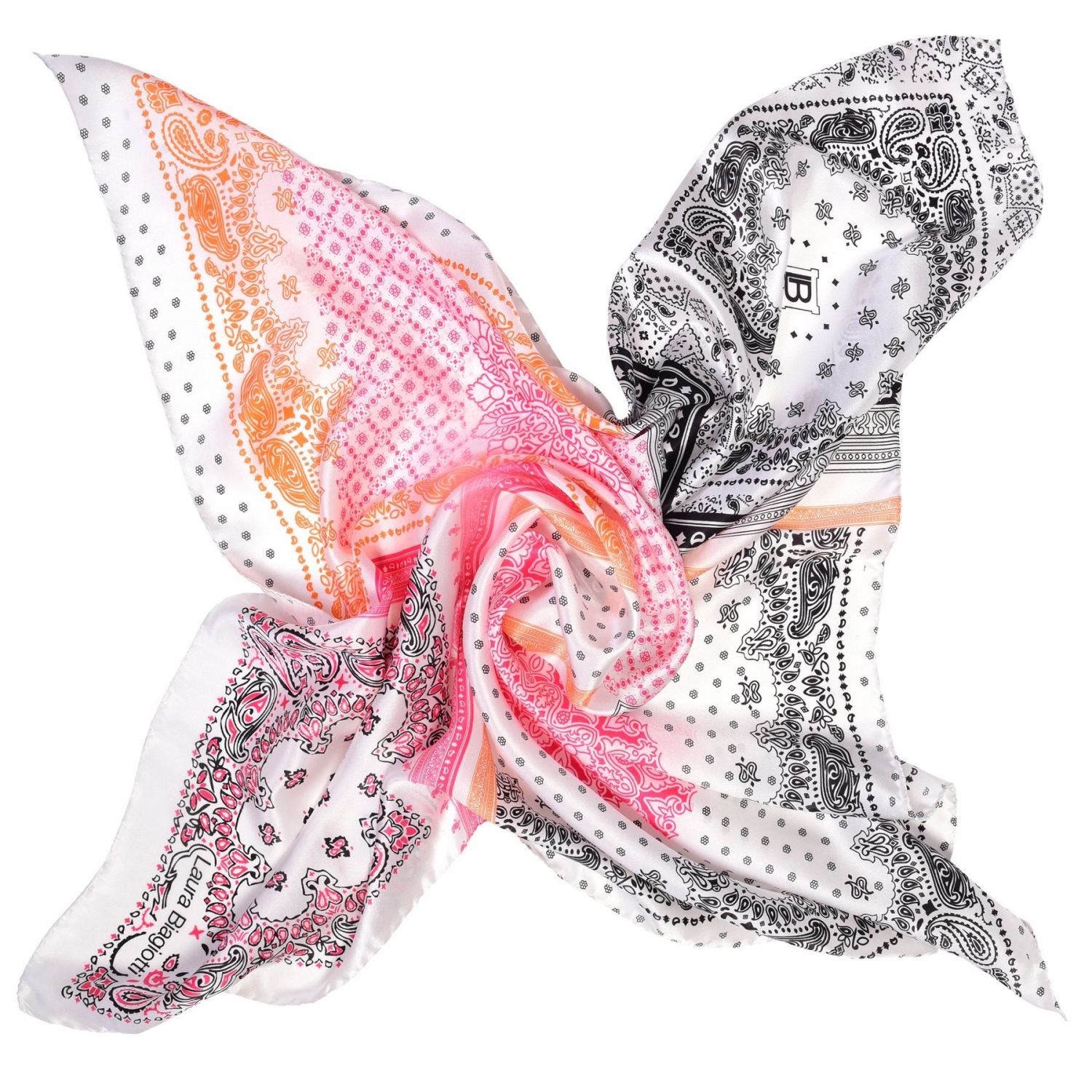Laura Biagiotti is one of Italy’s greatest fashion designers known worldwide for the extraordinary quality of her creation. An incredible artistic adventure, the courage, the passion, creativity and great demanding, all blend together to give life to a symbol of quality and style. She is considered the Ambassadress of the Italian Fashion around the world for her dedication to promote the “Made in Italy” label. Laura Biagiotti scarves collections are impressing with a new aesthetic code, a fusion of femininity and modern design. The extensive chromatic registry and the original pattern of the Laura Biagiotti scarves are perfected by the pure silk quality and their high finishes.