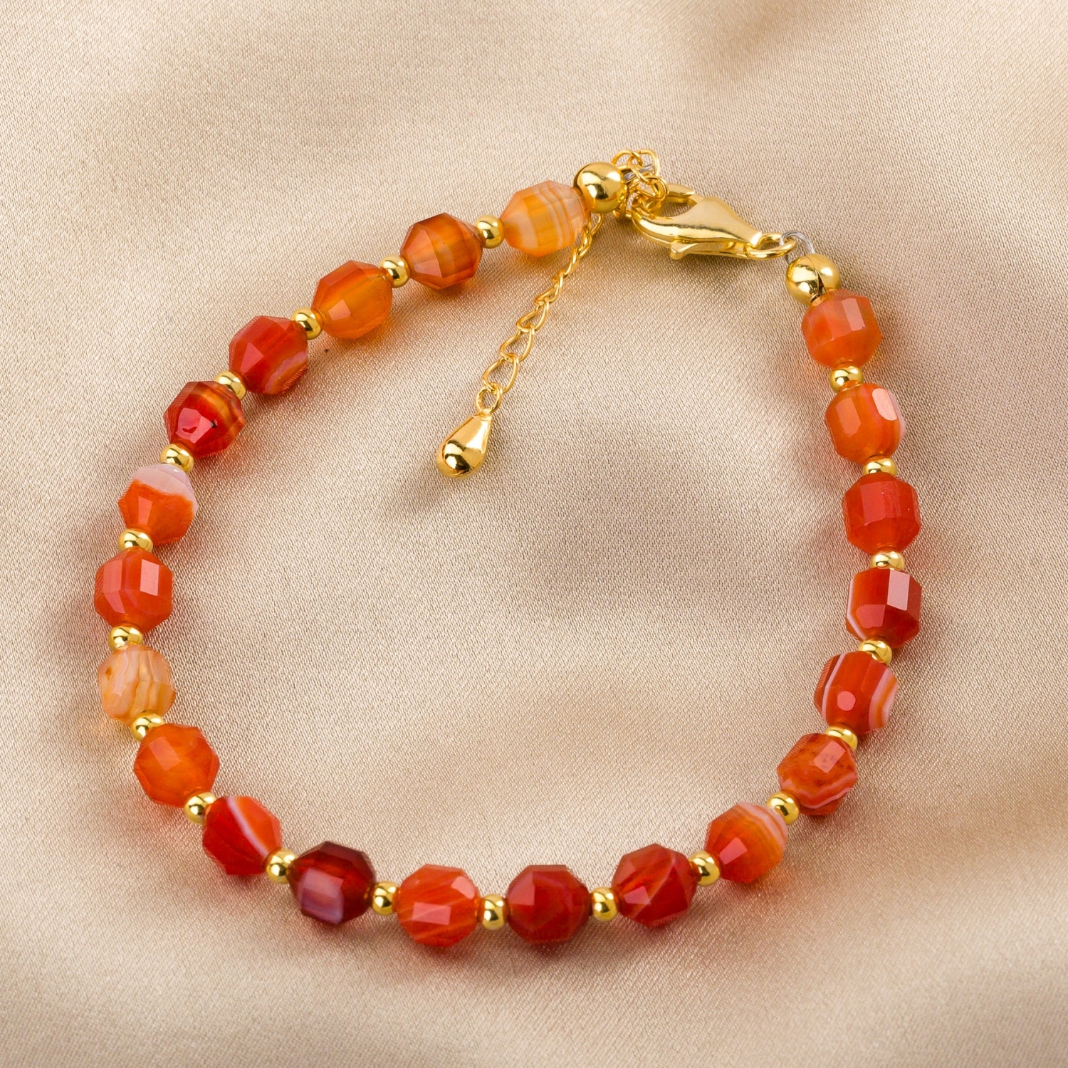 Touch Bracelet barrel agate brick colors 14K gold plated silver