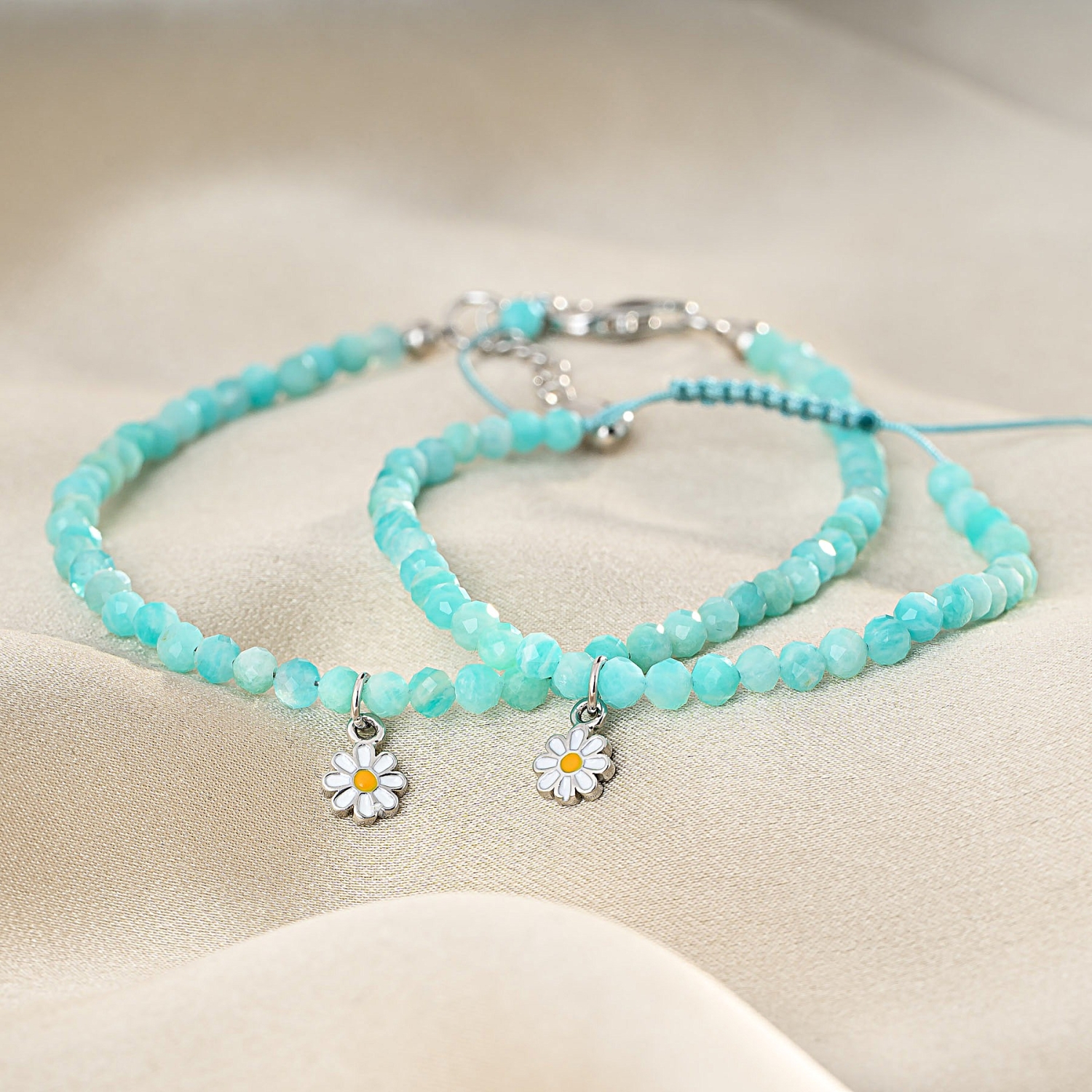 • 925 Sterling Silver Bracelet It's Spring amazonite mother and daughter set