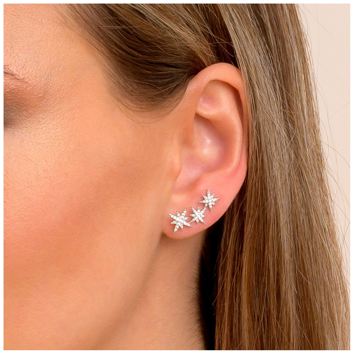 • Sterling Silver Earings Frosted Stars