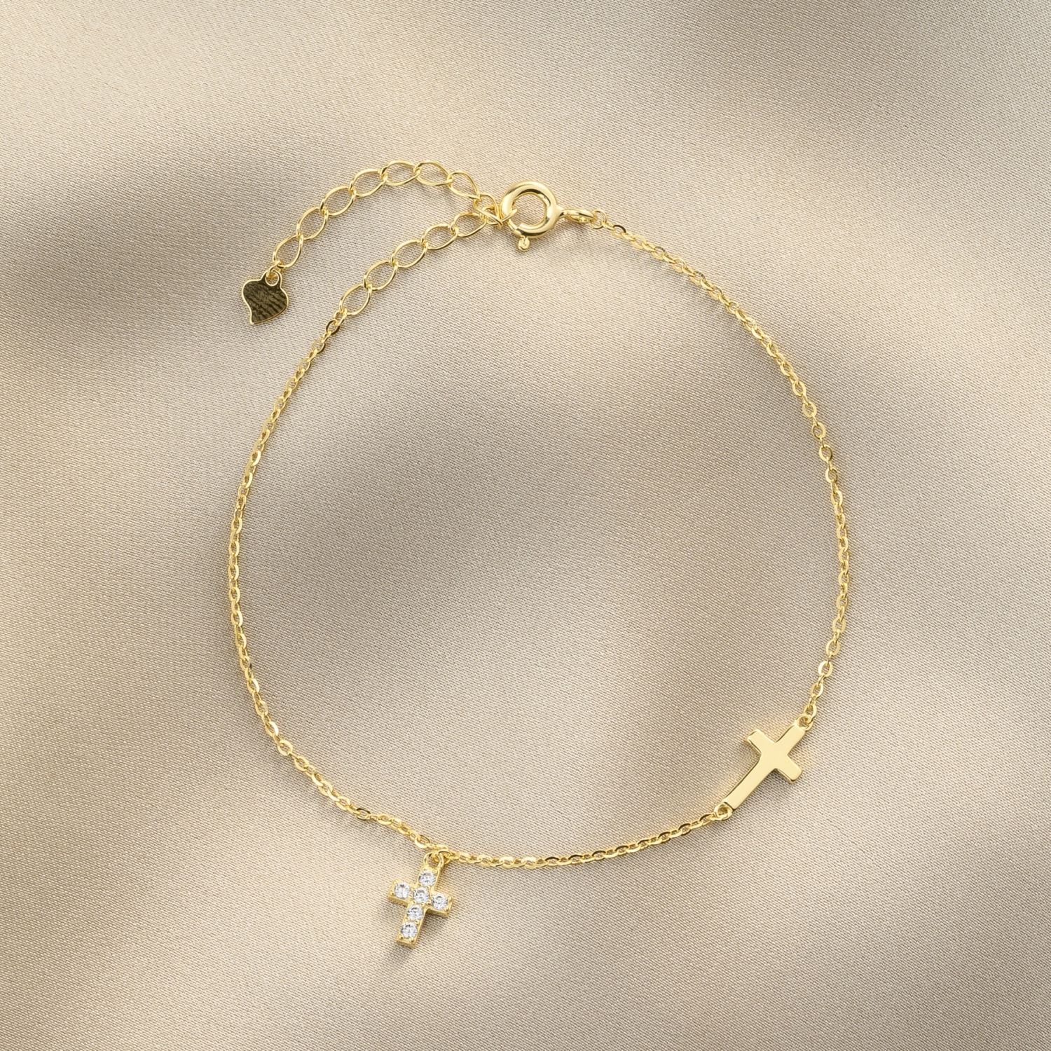 Sterling Silver Bracelet 2Gold Crosses