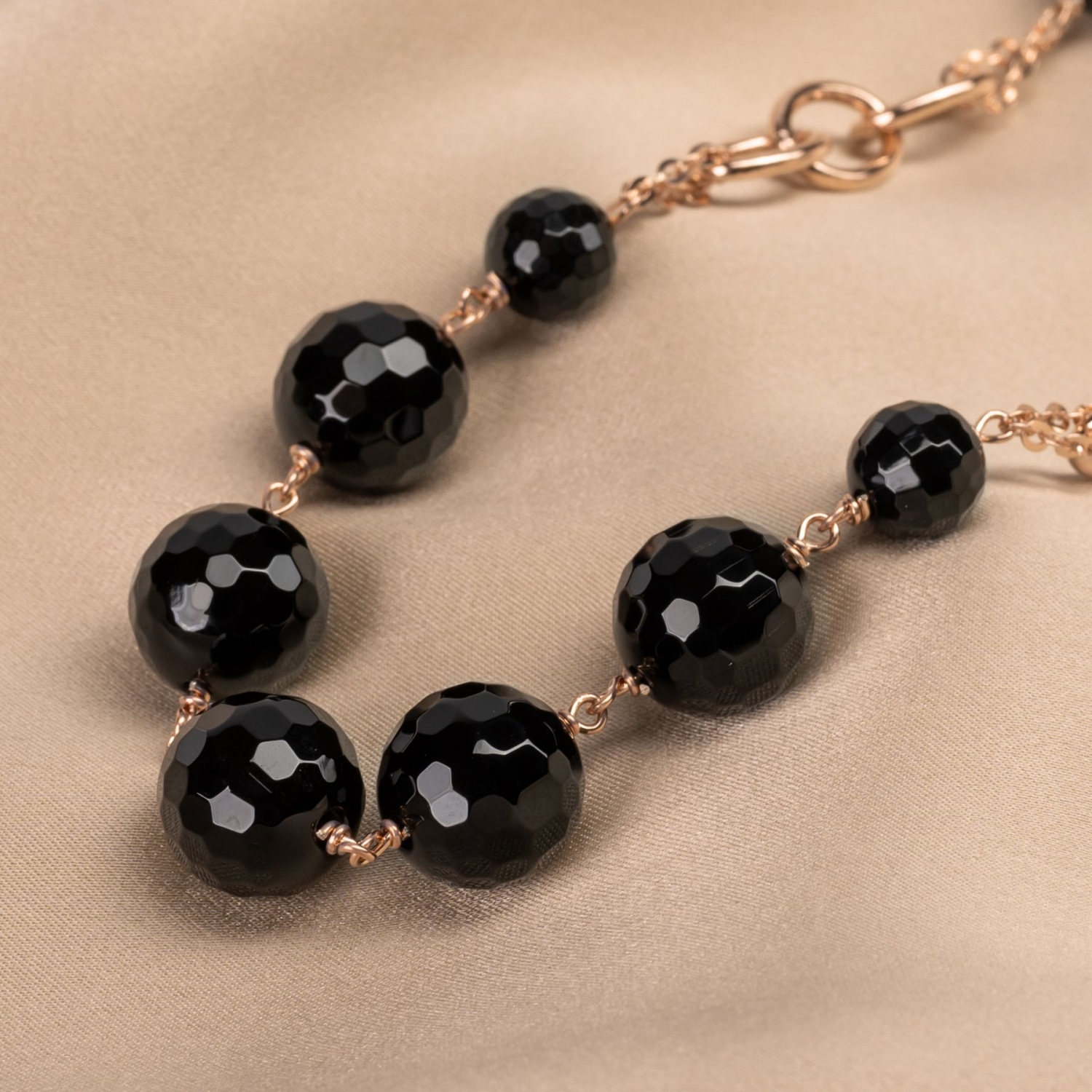 • Sterling Pink Silver Necklace black agate, 48 cm