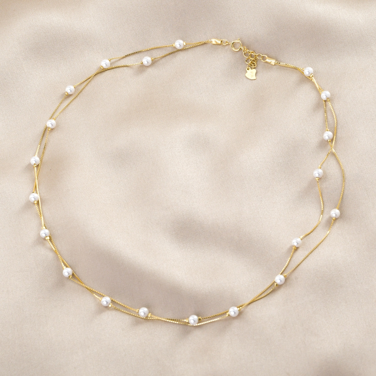 • Sterling Silver Necklace Delicate 20 Pearls gold