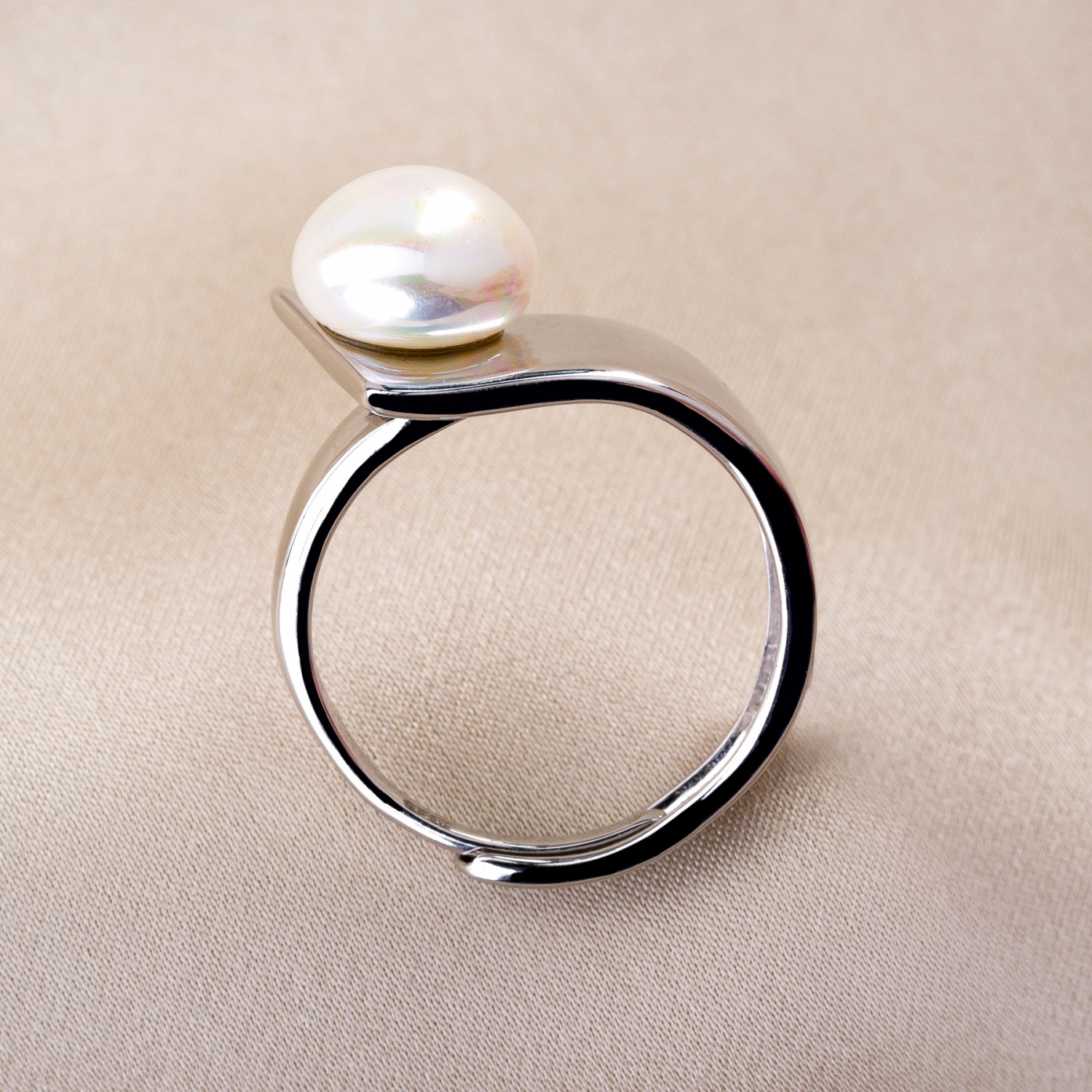 • Sterling Silver Ring Adjustable Allure Pearl White