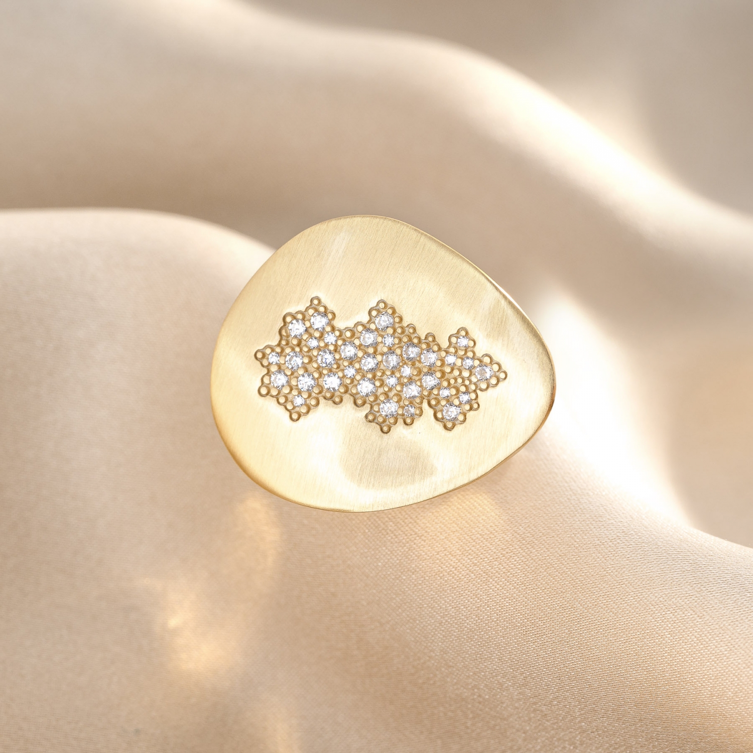 Inelul din argint Foglie Pave placat cu aur 23K este o piesa de exceptie disponibila exclusiv in Romania prin Tie-Me-Up. Acest inel spectaculos imbina maiestria artizanala cu un design contemporan, transformandu-l intr-un accesoriu indispensabil pentru orice garderoba sofisticata. Fiecare detaliu al acestui inel a fost gandit pentru a oferi stralucire si stil, fiind o expresie a luxului accesibil.