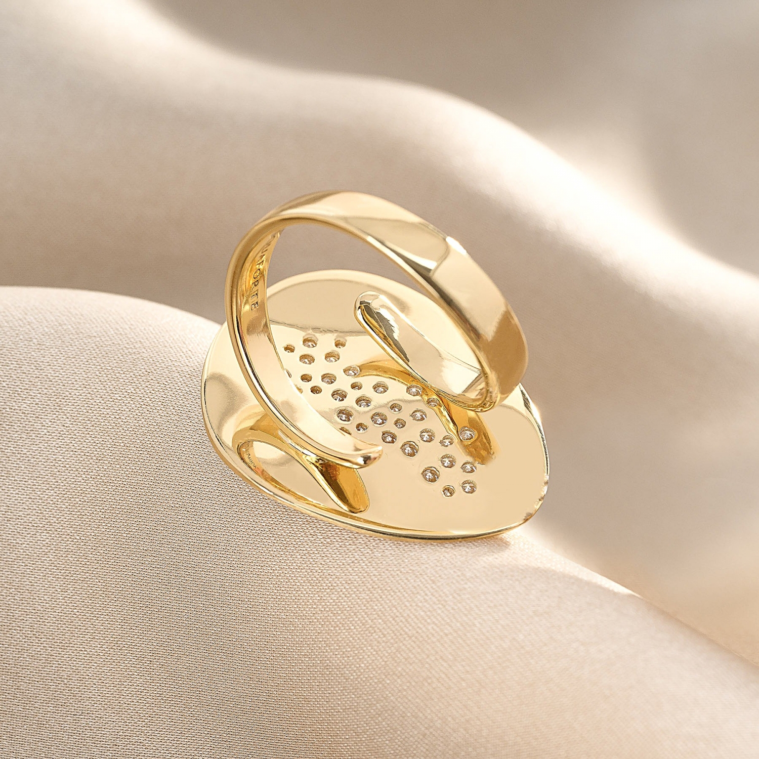 925 Sterling Silver Ring Foglie Pave, 23K gold plated