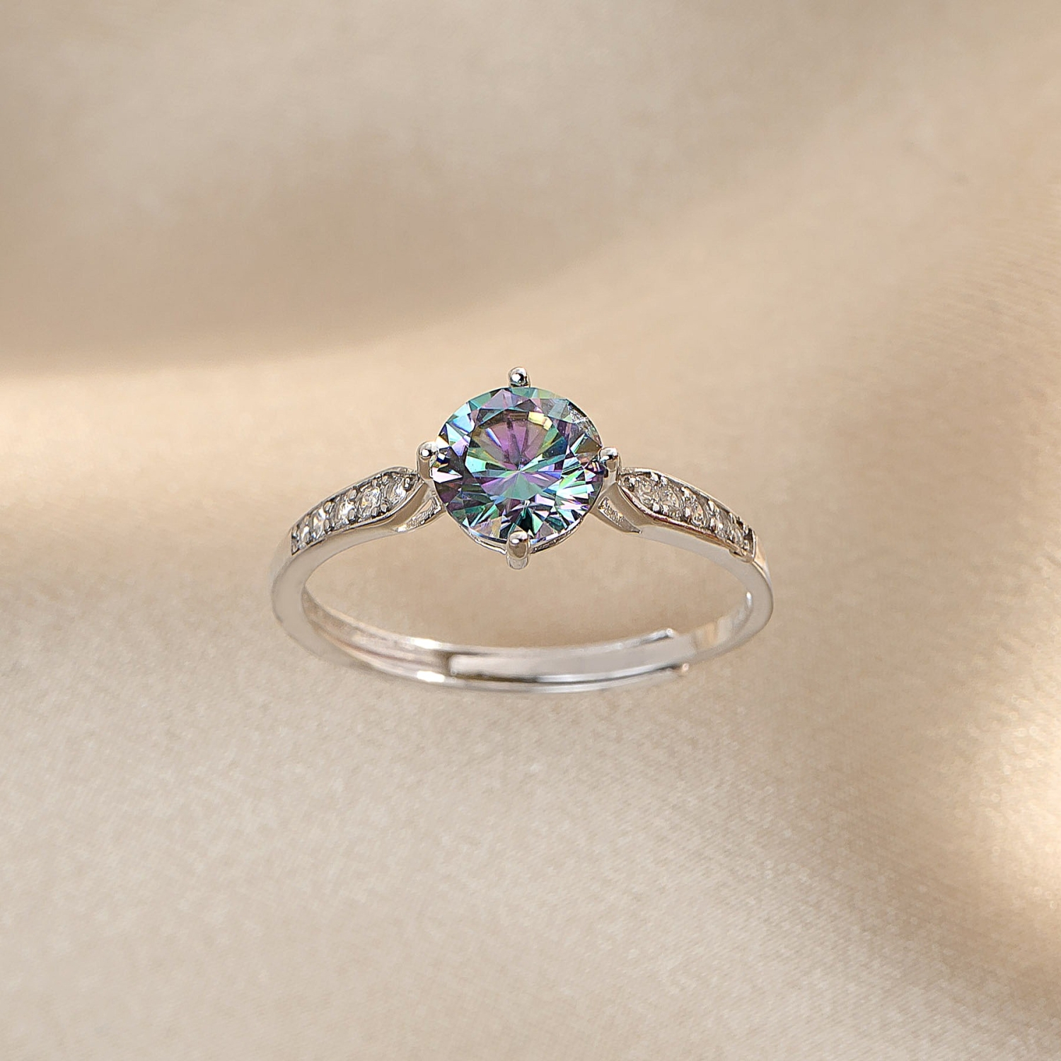 • Sterling Silver Ring Rainbow Eclat moissanit