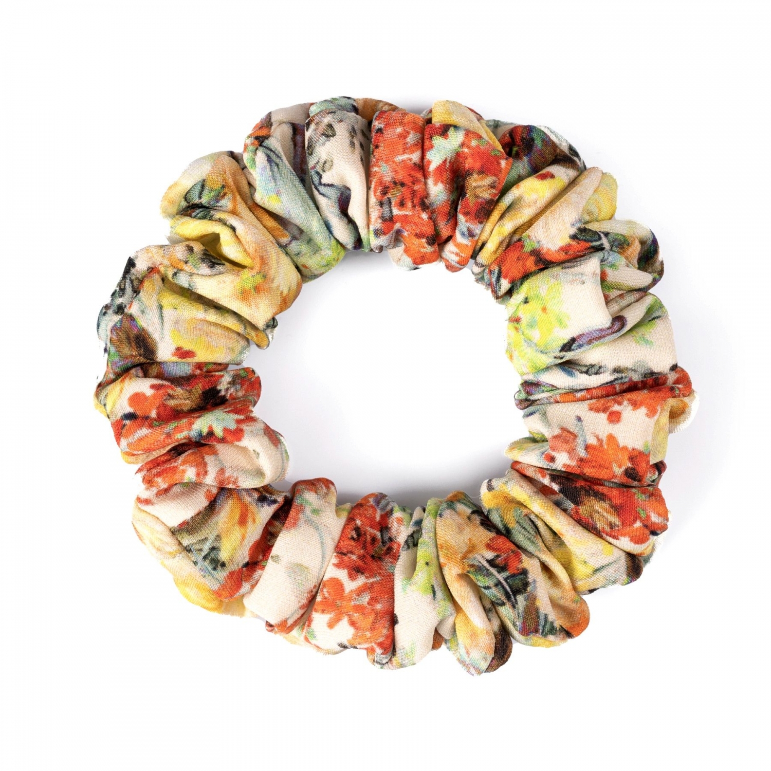 Acum si intr-o varianta mai discreta! Alege Hair Twist-ul din matase Scrunch Yellow Roses pentru a-ti prinde parul intr-un mod fashion! Hair Twist-ul Scrunch Yellow Roses se poate rasuci de 2-3 ori in jurul parului, pentru a-l aranja cum doresti: strans la spate intr-o coada, intr-un coc inalt sau in alt fel, dupa fantezia ta. Datorita matasii naturale, calitatii elasticului folosit si a finisajelor manuale impecabile, acest accesoriu protejeaza parul.