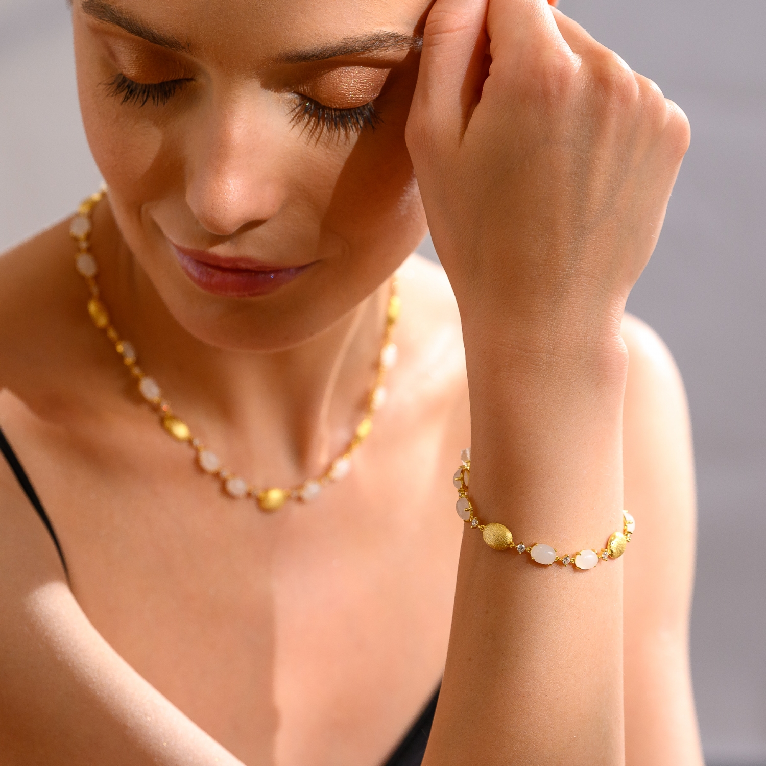 Bratara argint Posh Milky Cat Eye gold