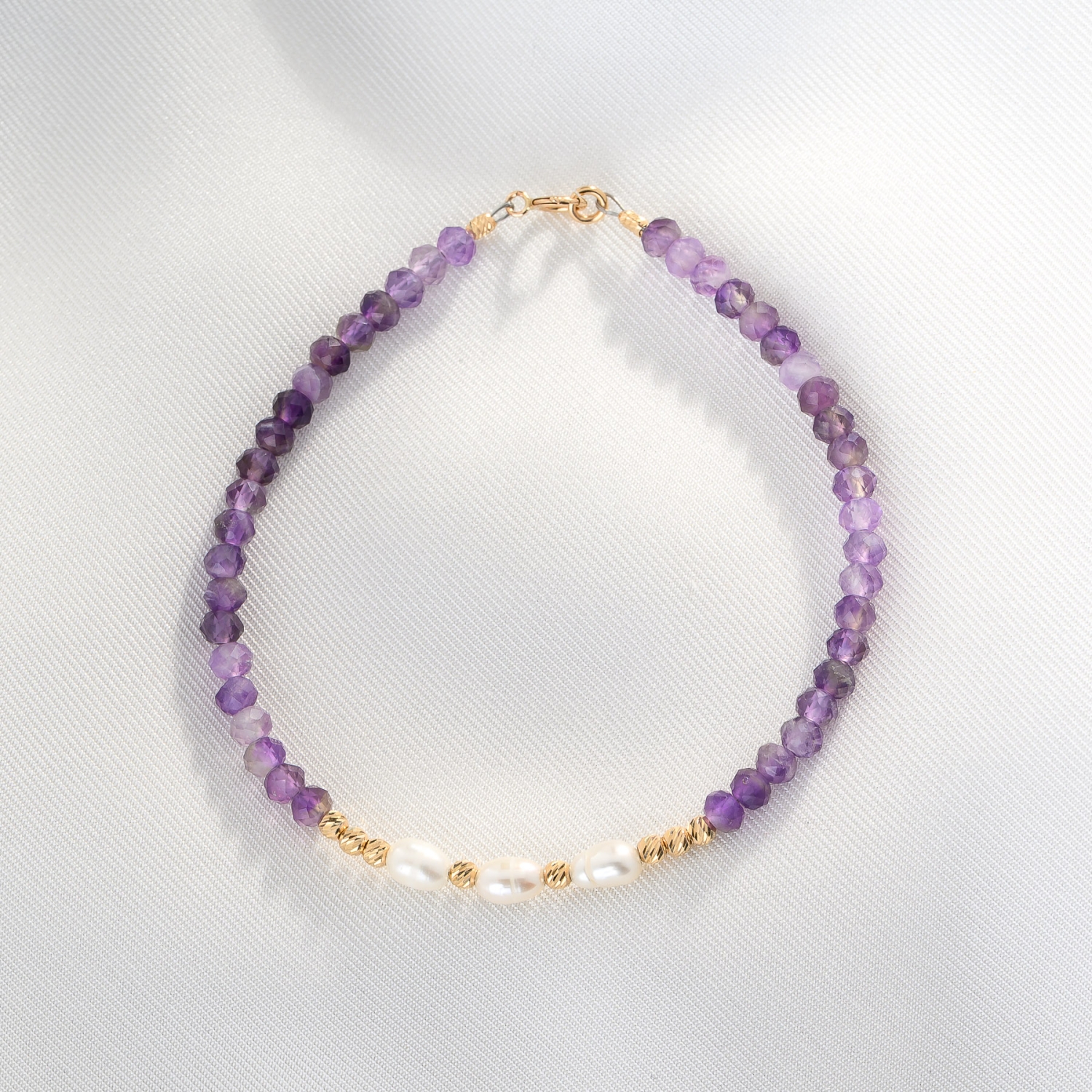 • Bratara Everlight ametist, perle, sfere aur 14K