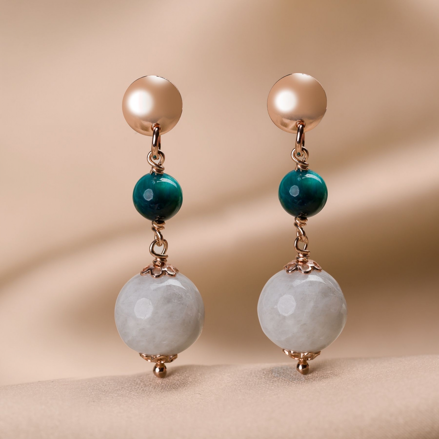 • Pietre semipretioase: Ochi de tigru turcoaz, Piatra lunii