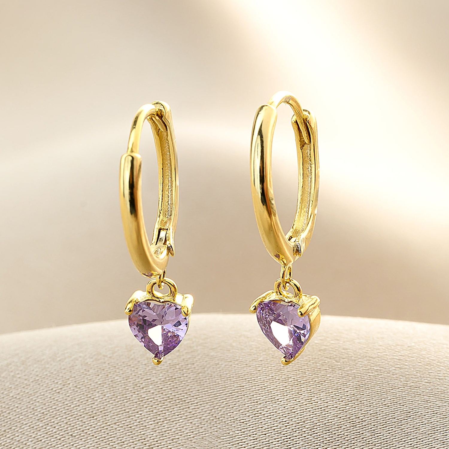 Realizati din argint calitate, placat cu aur de 14K, cercei As My Heartbeat in Spring gold ofera o stralucire aparte si durabilitate. Elementul central il reprezinta inimioara delicata cu pietre cubic zirconia de culoare mov intens. Aceasta nuanta vibranta de mov adauga o pata de culoare care atrage privirile si completeaza perfect nuanta aurie a cerceilor.