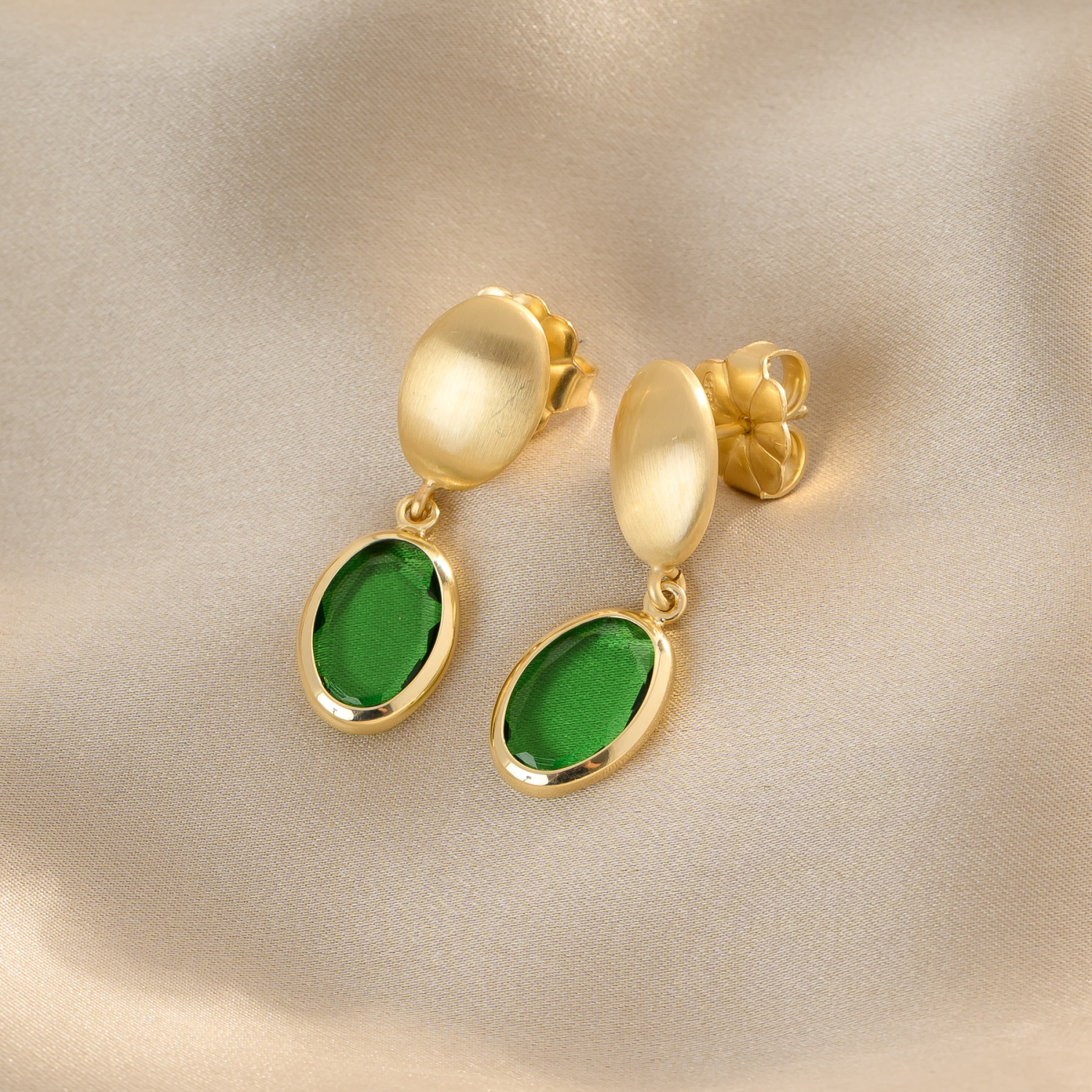 • Cercei argint Carmelle Ovali Verde, placati cu aur 23K