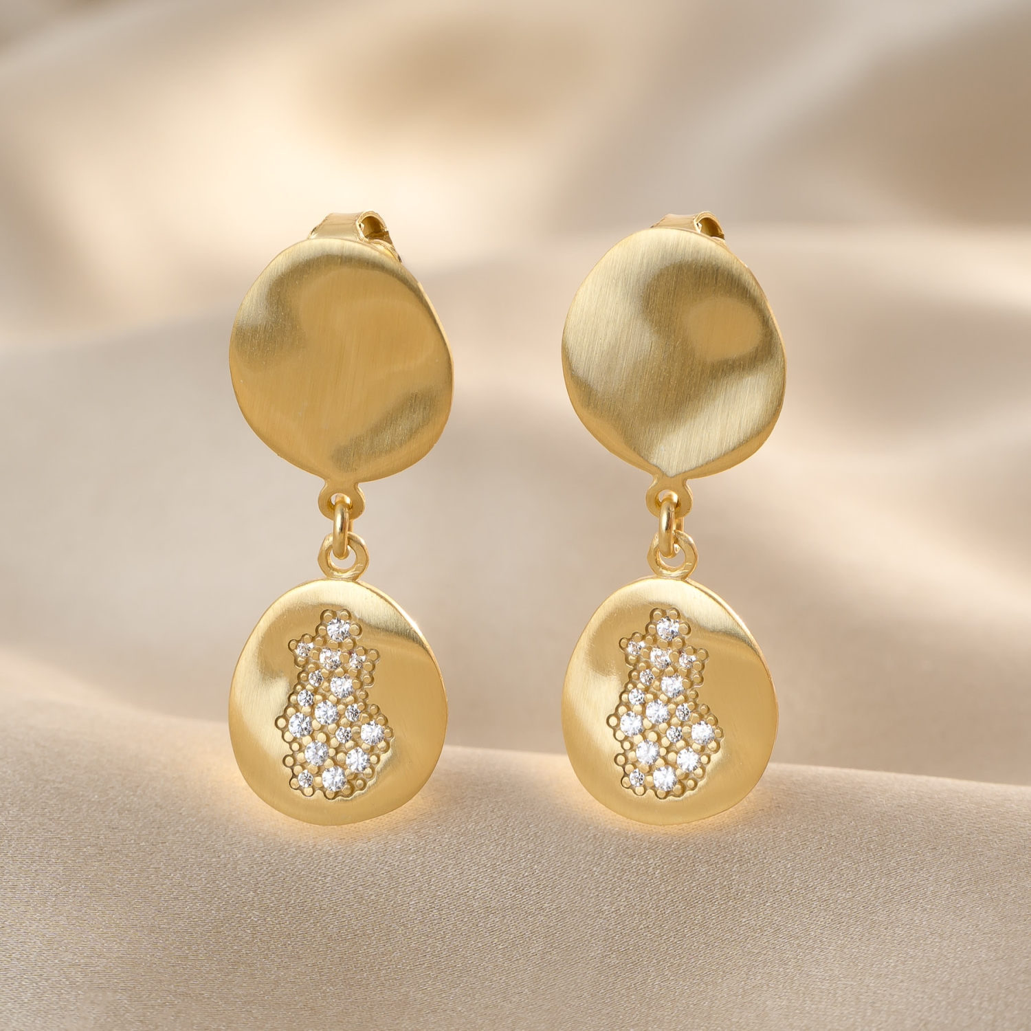 • Cercei argint Foglie Pave Lungo placati cu aur 23K