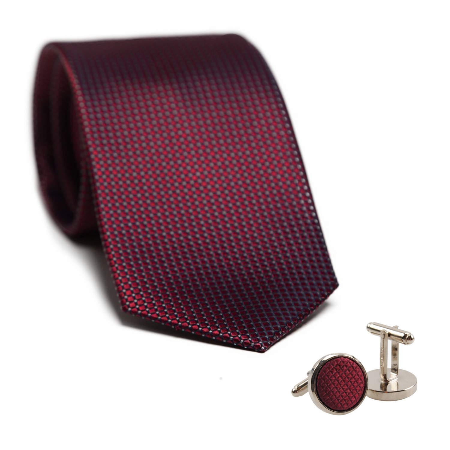 Cadou: Cravata matase L. Biagiotti patrate rosu inchis Executive si butoni inox si matase bordo