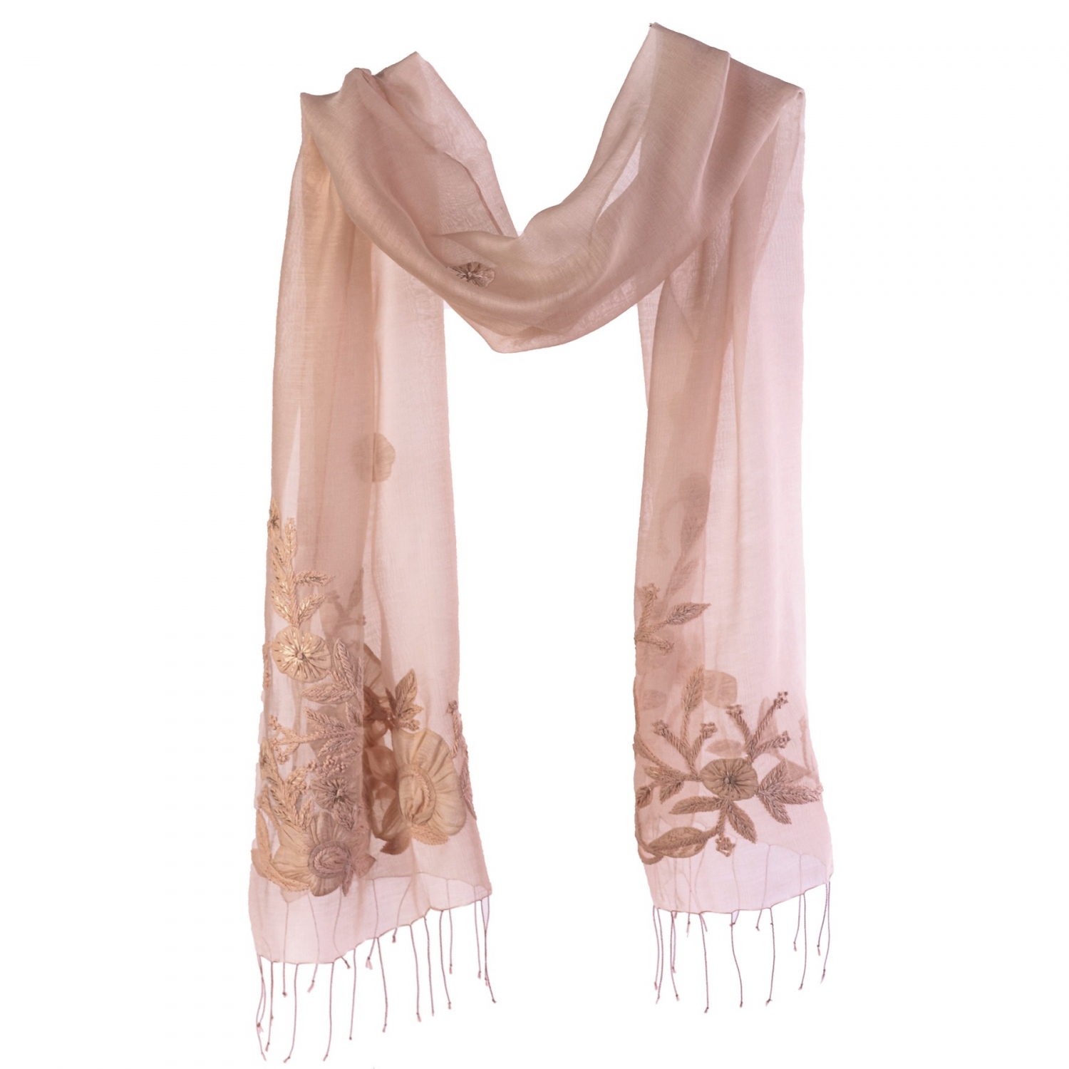 • Esarfa lana si matase Marina D' Este flori aplicate pe bej