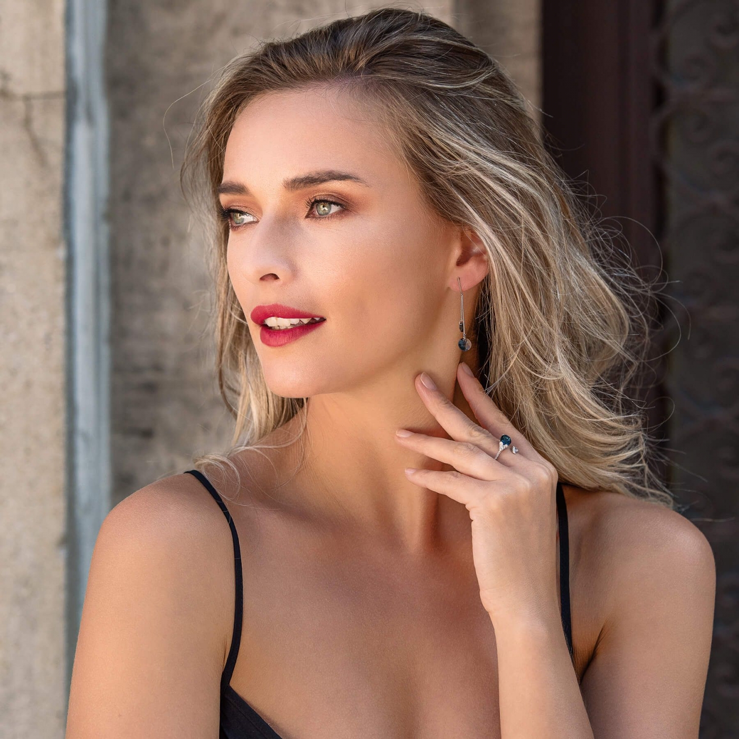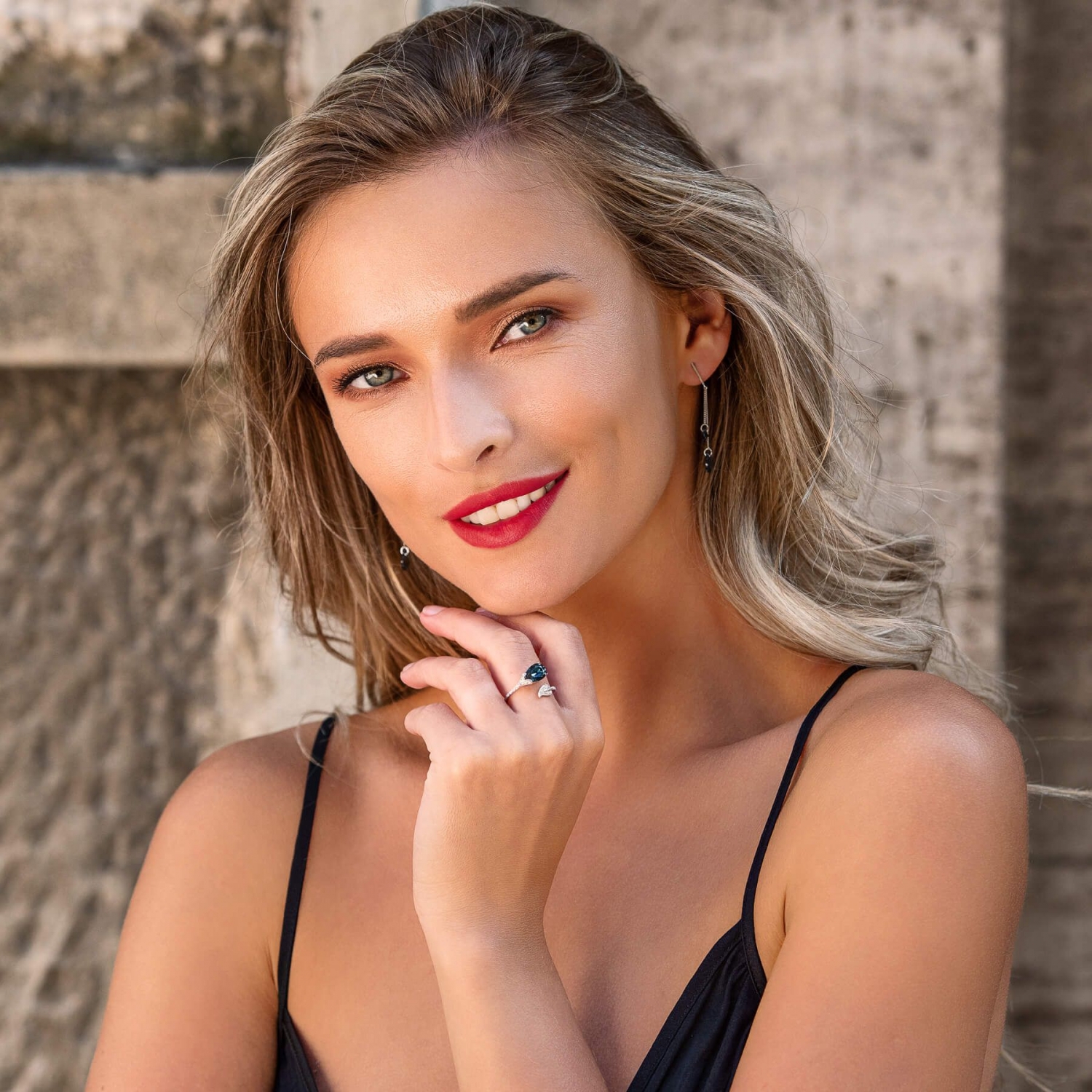 Inel argint reglabil Cristal Bermuda Blue Drop
