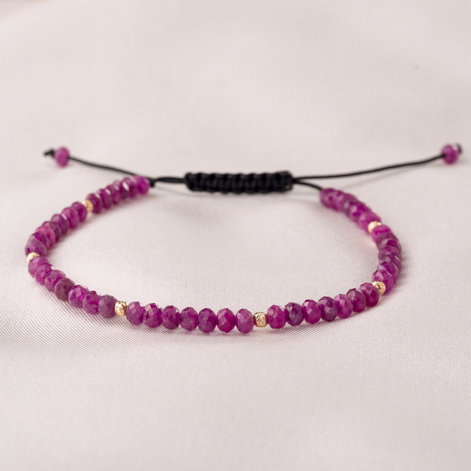 Bratara cu snur, sfere aur si rubin