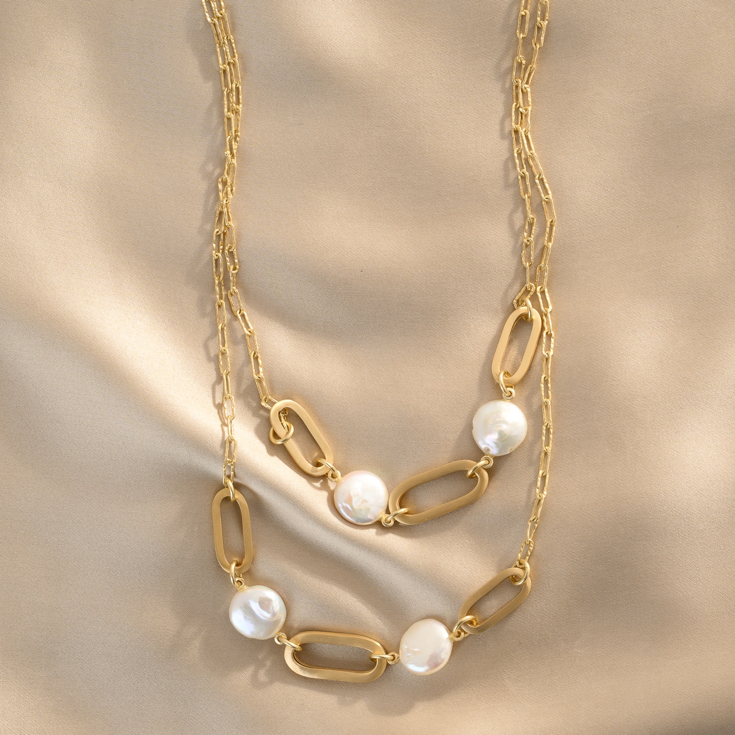 • Colier argint lung Baroque Perle Chic, 100 cm, placat cu aur 23K