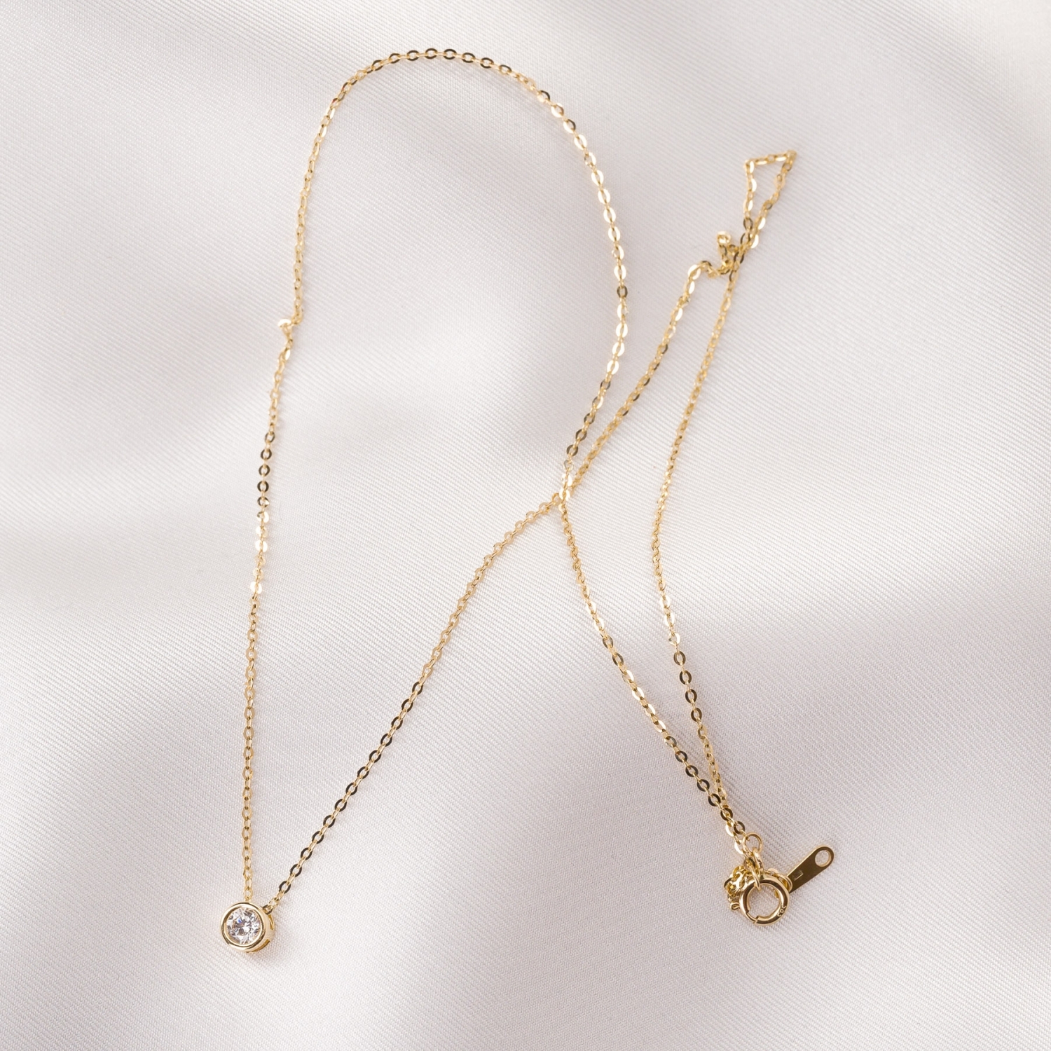 • Colier aur 14K cu charm Solitaire zirconia